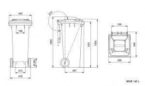 140L affaldscontainer med 2 hjul, fremstillet til indsamling af alle slags affald. Fås i mange farver og med mulighed for diverse ekstraudstyr.