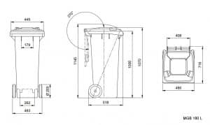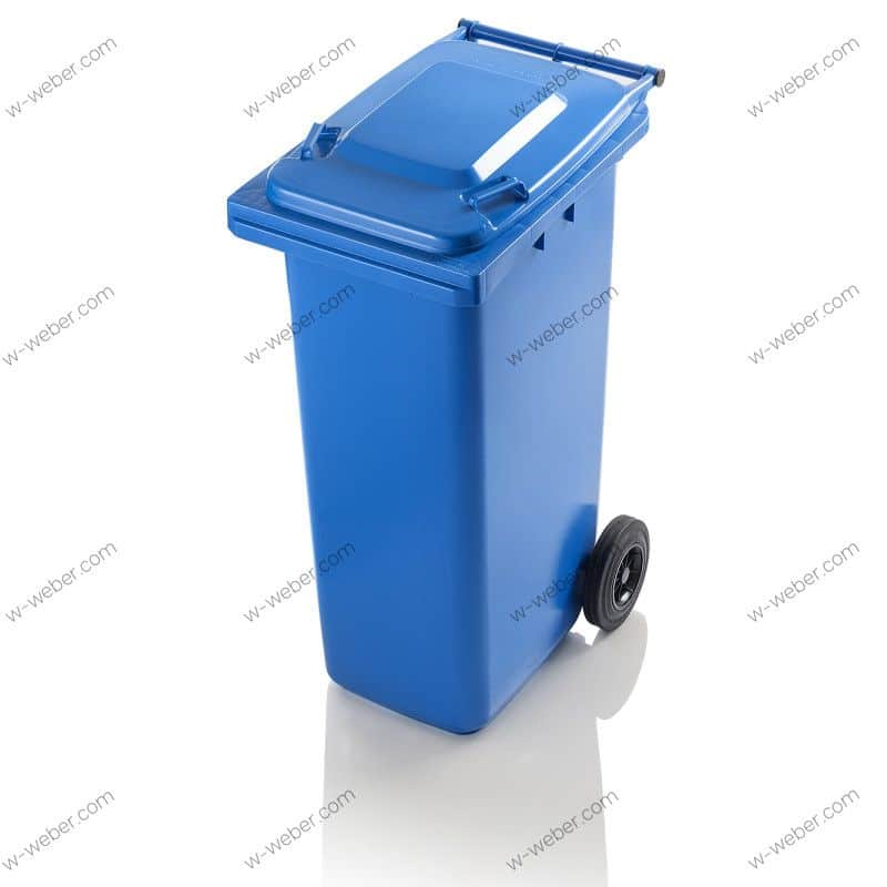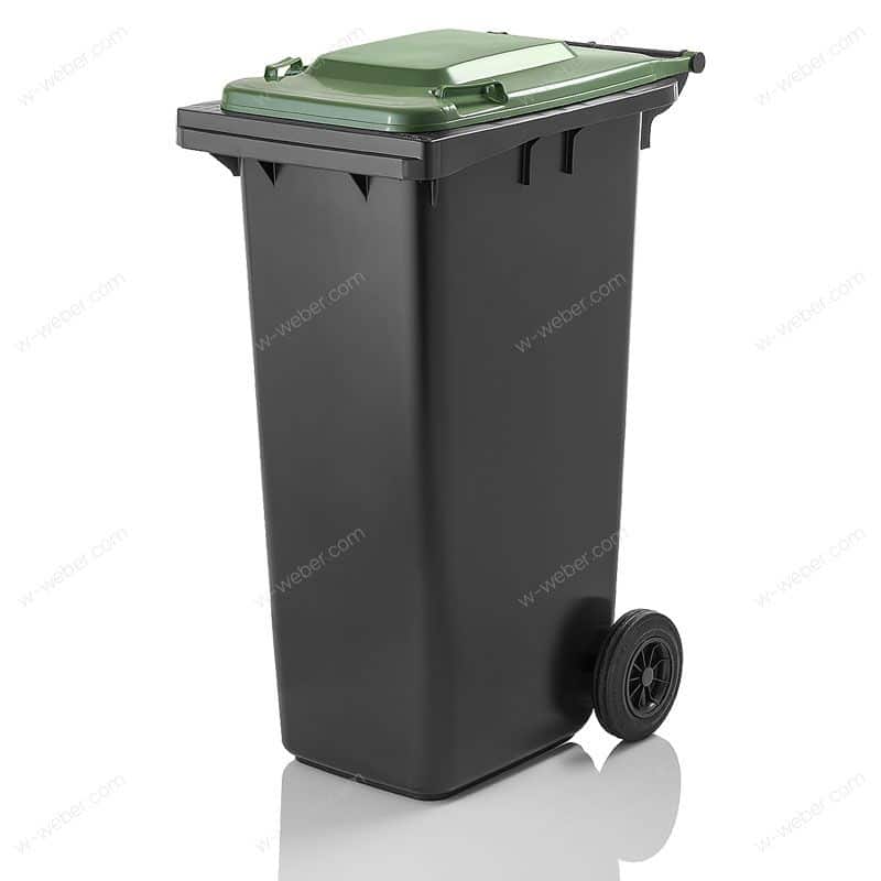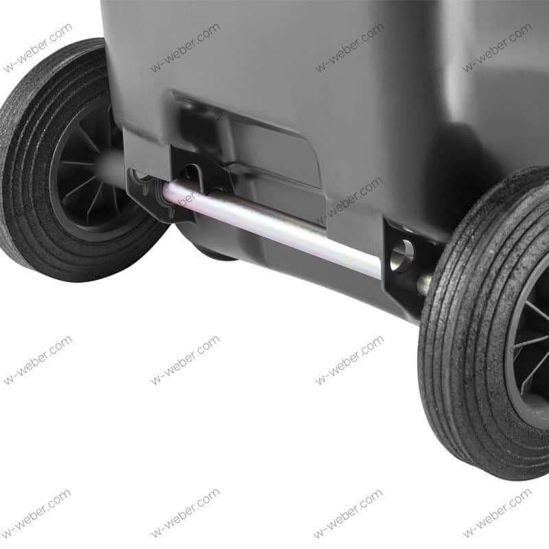 Webers 180L container er fremstillet i formstøbt rent polyethylene (HDPE) og opfylder kravene til DIN-EN 840–1, fås i flere farver til affaldssortering.