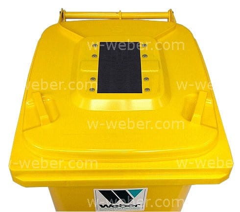 2 og 4 hjulede affaldscontainere kan leveres med indkast til plast og dunke som ekstraudstyr. 2-hjulede containere leveres med 1 indkast. 4-hjulede containere leveres med 2 indkast.