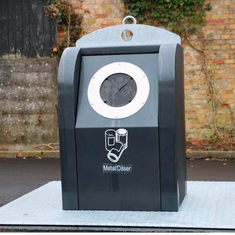 EF underjordisk beholder, et underjordisk affaldssystem, som både er en pladsbesparende og økonomisk løsning. Denne model er med rundt indkast, særligt velegnet til metal og dåser.